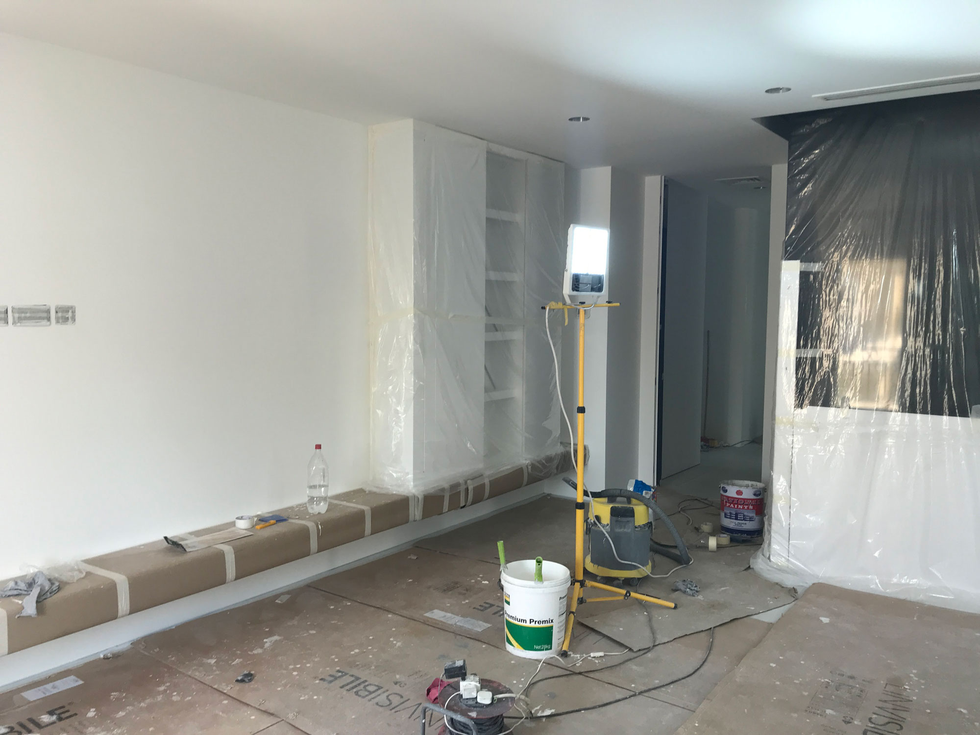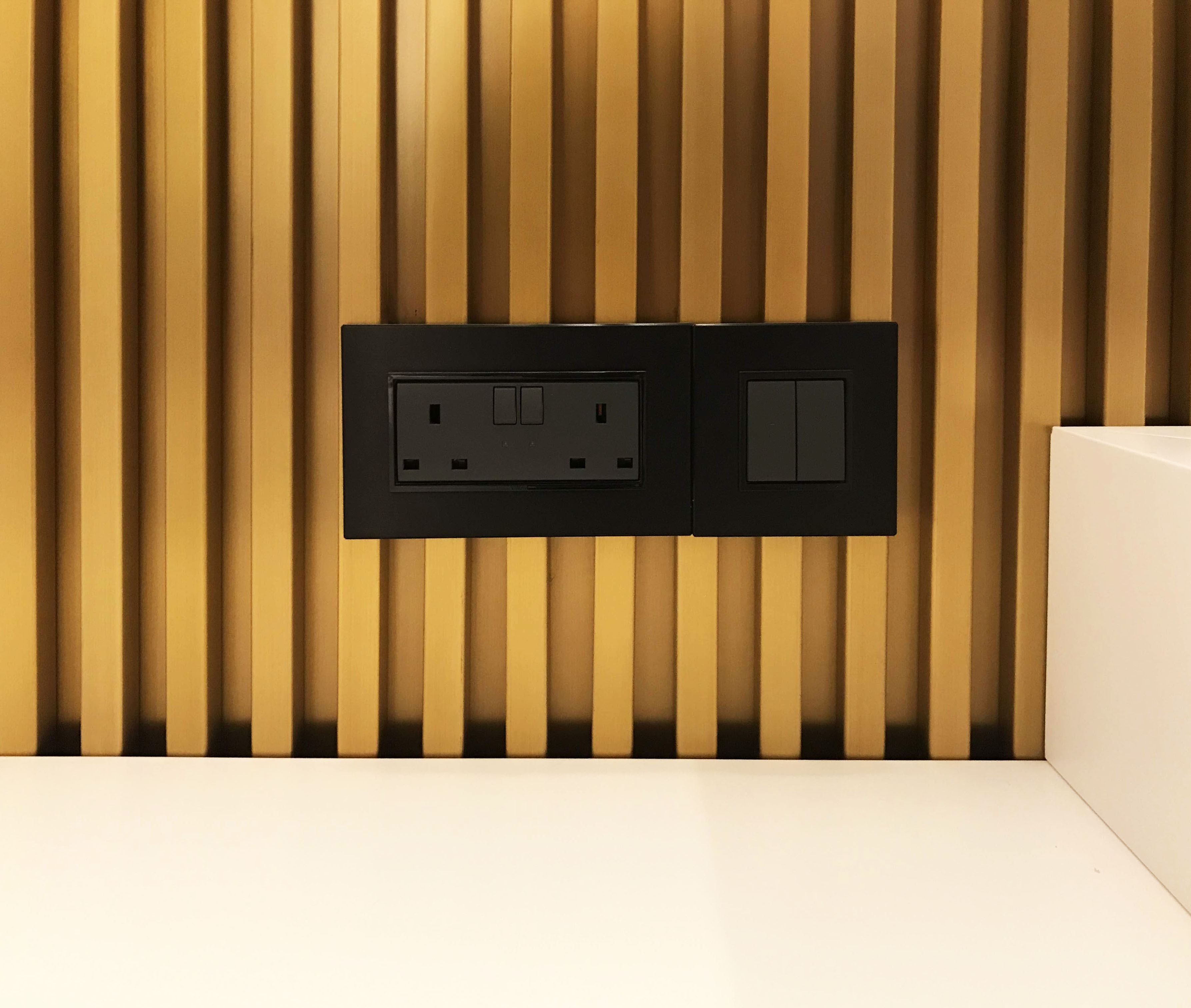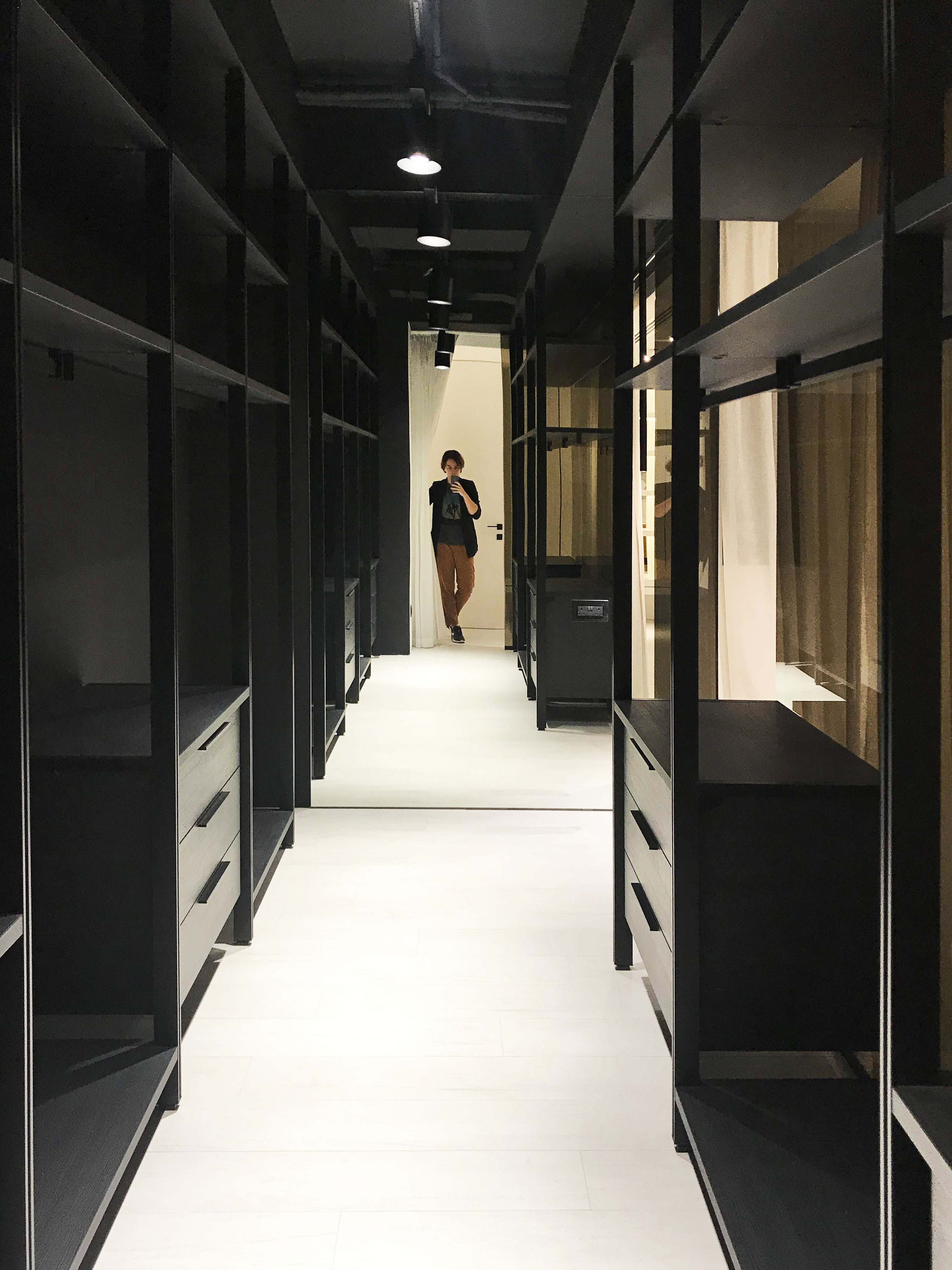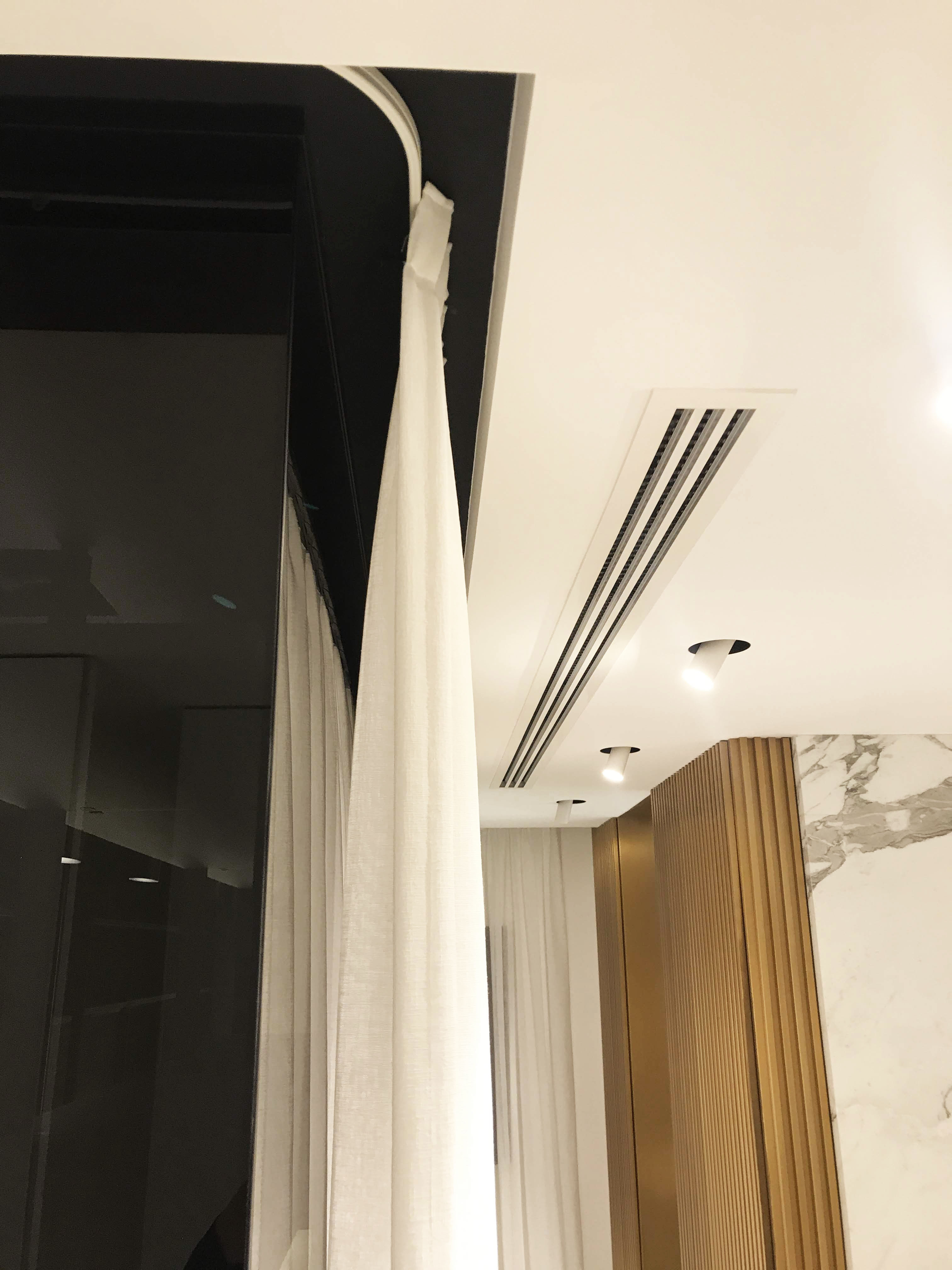 Master bedroom is a part of Dubai Villa project. Bedroom divided into few areas: walk-through wardrobe, corner for laptop, bed area and bathroom with the open entrance.