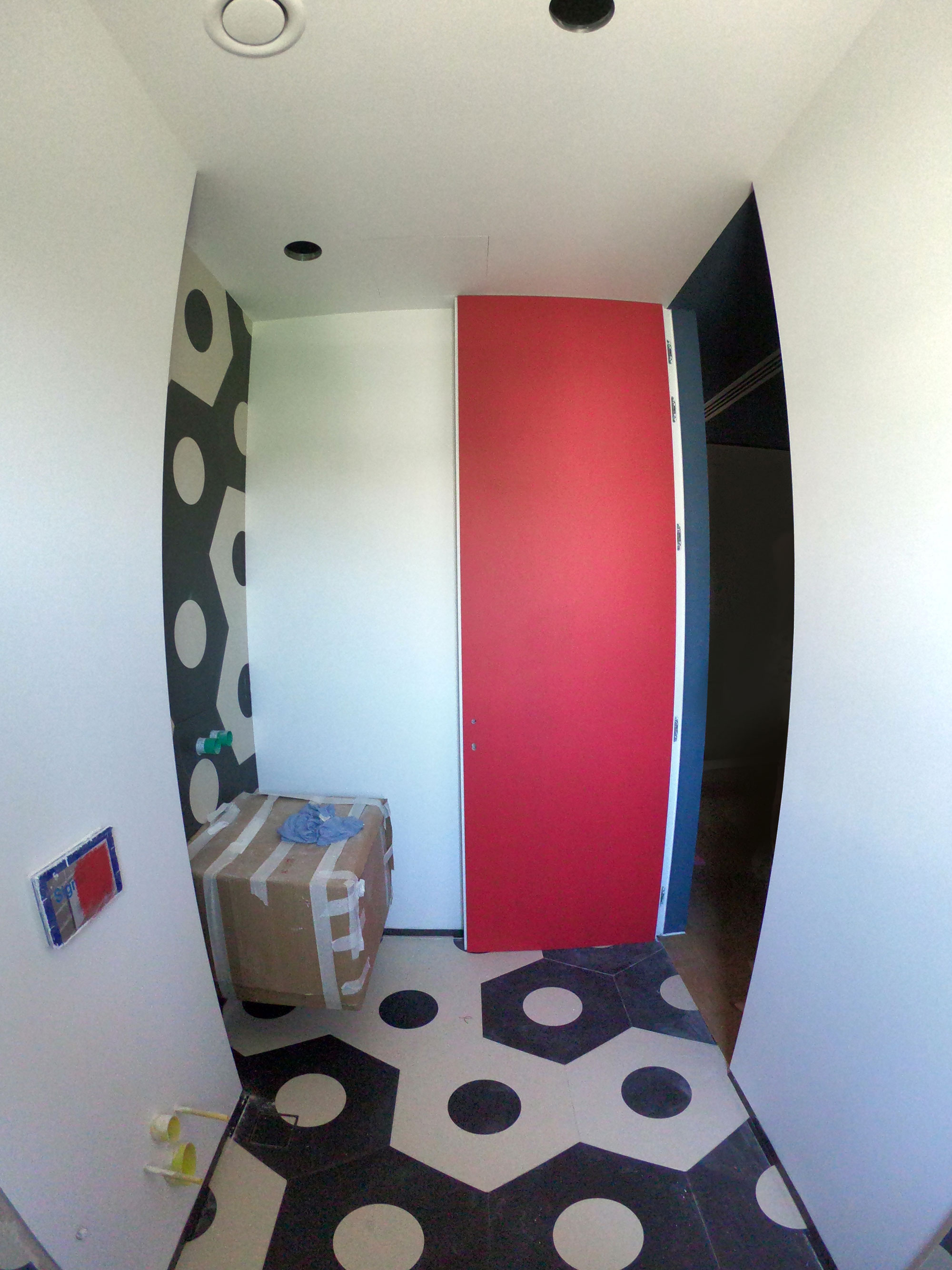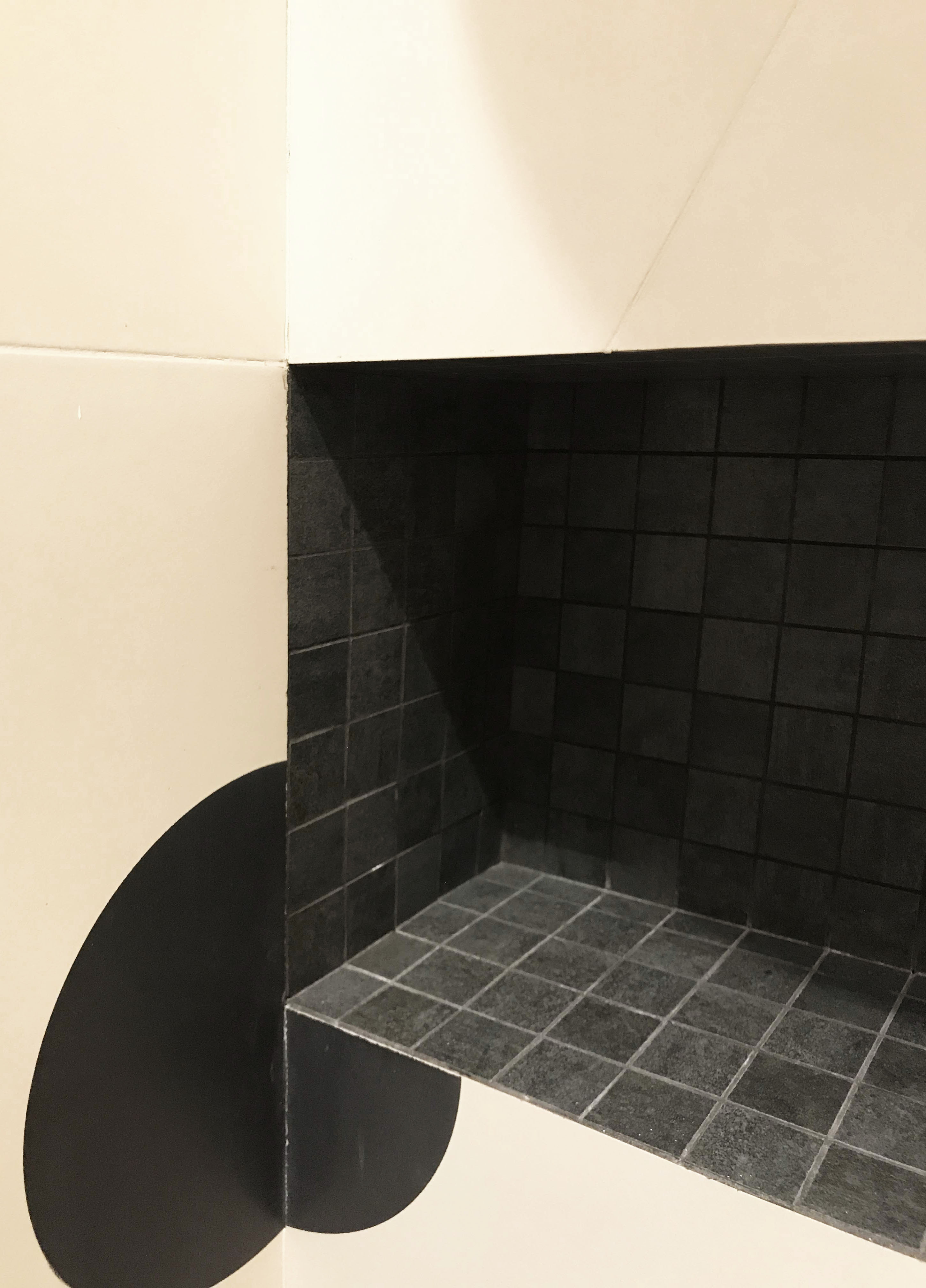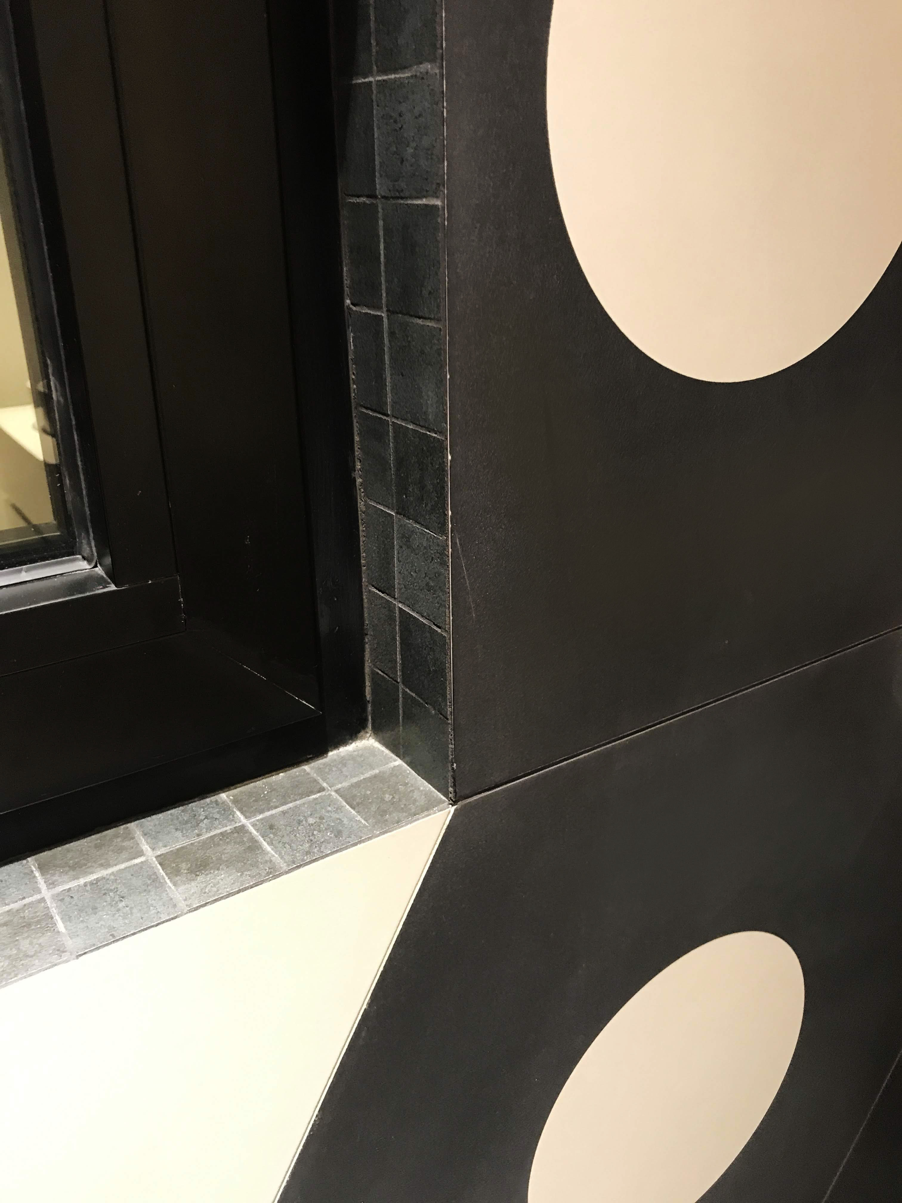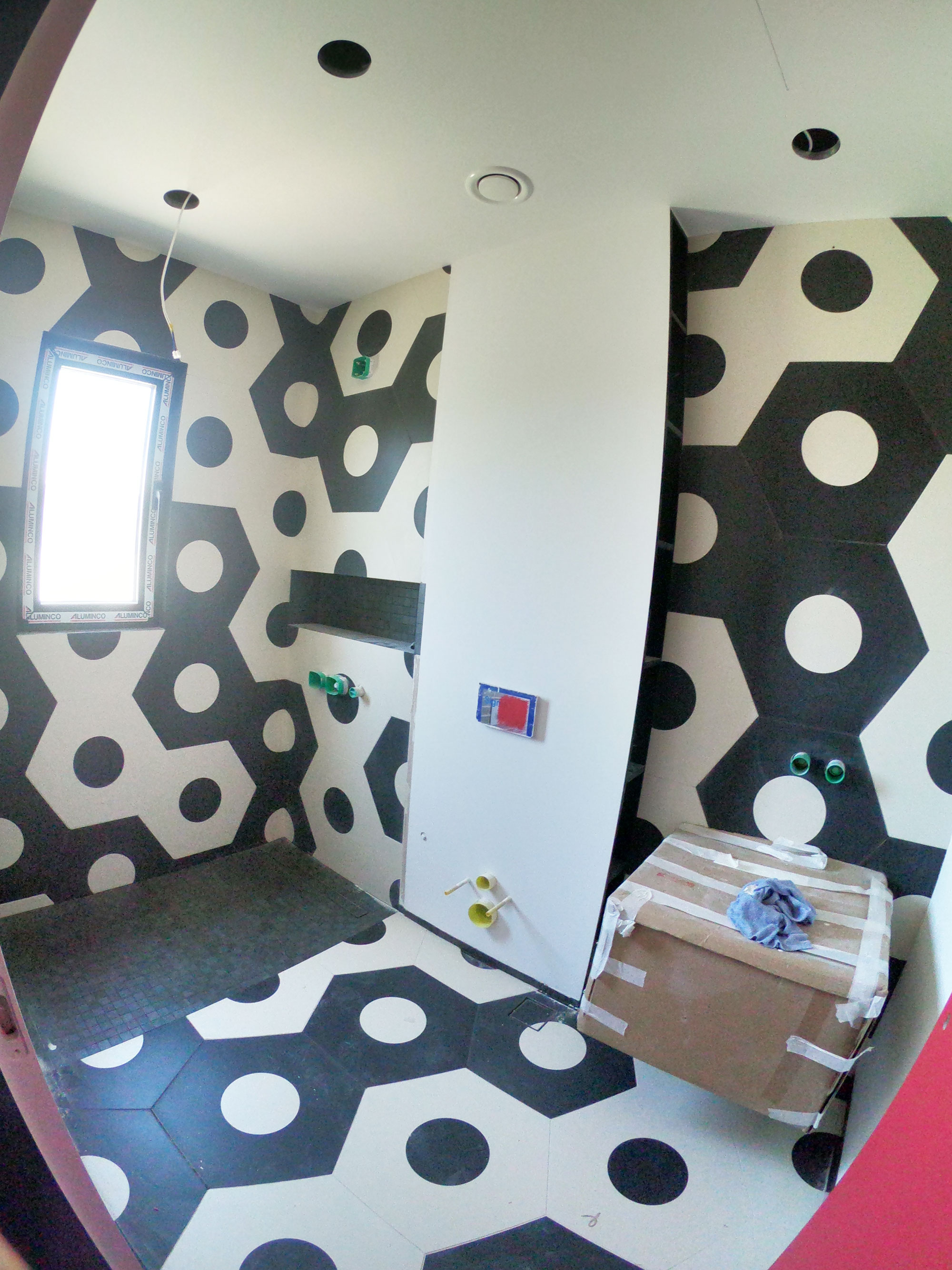 This bathroom is a part of FC Barcelona bedroom. In a bathroom was used big size tile, trying to catch a football mood.