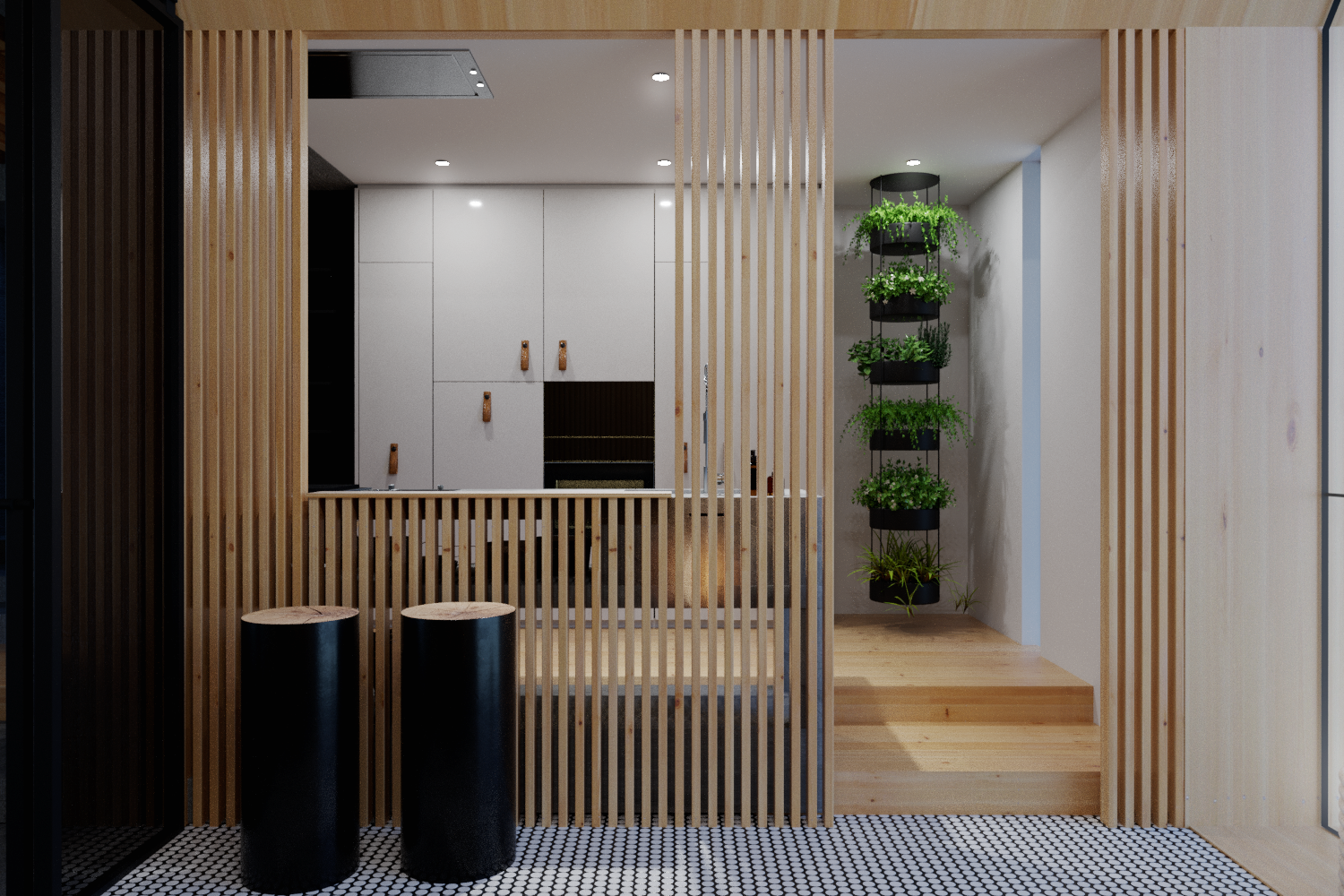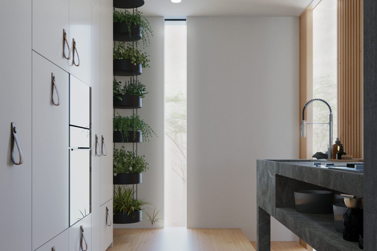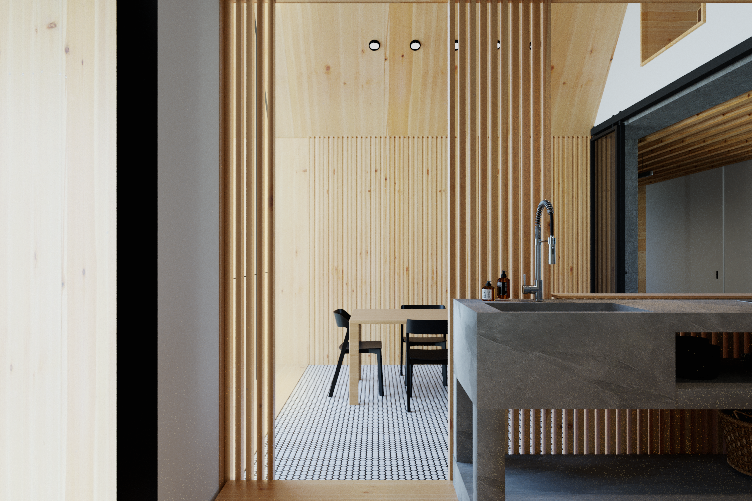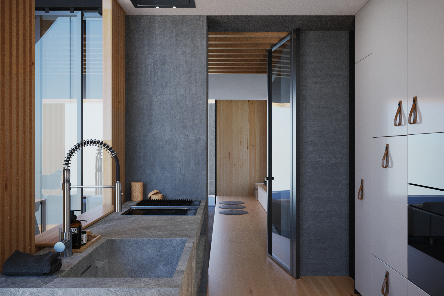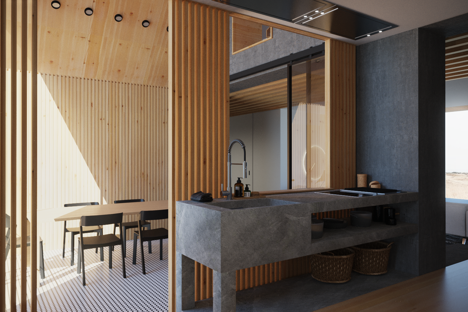 The holiday house furniture is minimalistic and straightforward. The main idea was to create a functional, timeless interior.